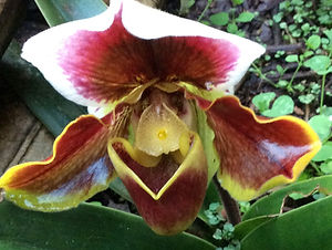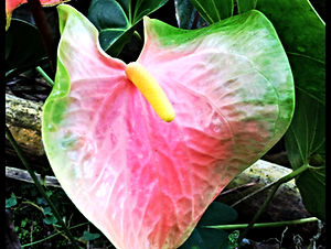 Hoja (espata) blanca de color brillante encerada, y espádice blanco cremoso con punta amarilla
